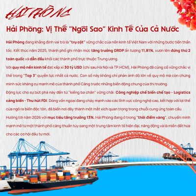 Hải Phòng đang bước vào giai đoạn phát triển mạnh mẽ nhất trong nhiều năm trở lại đây, khẳng định vai trò ngôi sao kinh tế phía Bắc và là điểm đến mới của dòng vốn đầu tư trung – dài hạn.